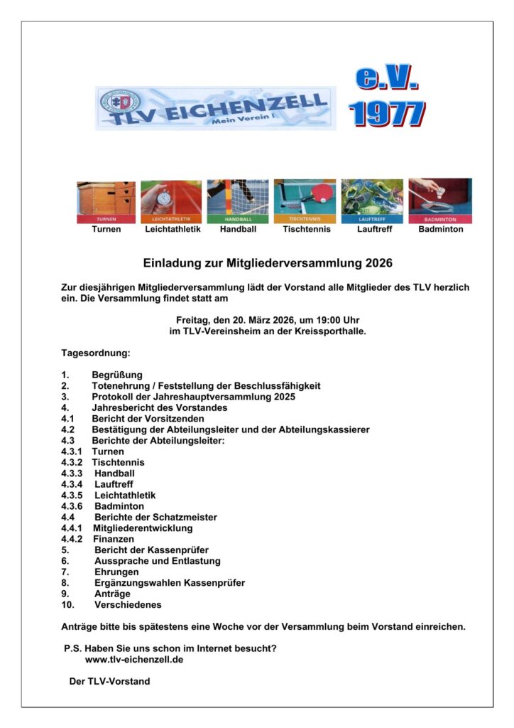 Herzlich Willkommen auf der Seite des TLV Eichenzell